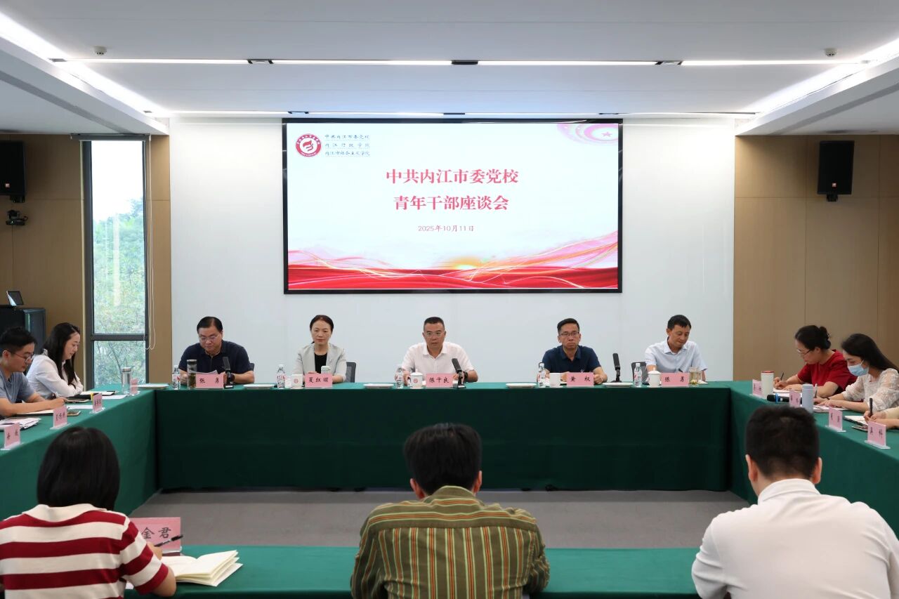 2025年10月11日,内江市委党校以“青春逐梦守初心 不负韶华建新功”为主题召开青年干部座谈会,校委班子全体成员出席会议,17名新近提拔晋升、上挂下派、脱产驻村及跟岗锻炼的青年干部参加会议。
